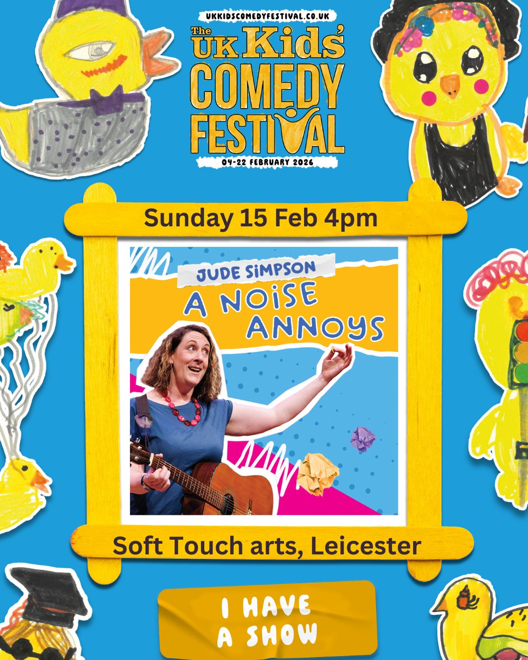 “A Noise Annoys” is a poetry show for all the senses! It features rhymes, noises, songs, surprises and lots of audience interaction. Bursting with joyful humour and witty wordplay, Jude takes the audience on a mind-bending journey through the sounds of languge and the language of sounds. There is lots of joy, a healthy dose of nonsense, and a few heartfelt moments of beautiful hush.