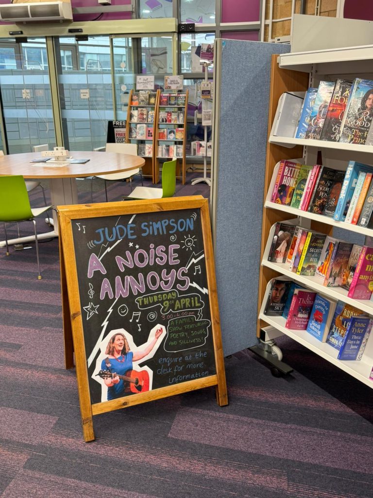 “A Noise Annoys really lifted my spirits in a way I wasn’t expecting. With well pitched puns, joyfully chaotic songs and poems that play, I was captivated the whole way through. My 9 year old kept giving me meaningful looks through his laughter so I enjoyed him enjoying it, and getting carried along with Jude’s brilliant energy and lyrical magic.” – Abbi Jinks for Bedford Today (for full review see here)